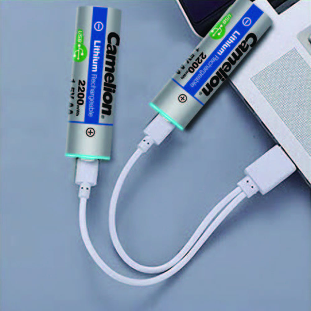 باتری لیتیوم قابل شارژ کملیون مدل USB-C سایز AA، ظرفیت ۲۲۰۰ میلیواتساعت