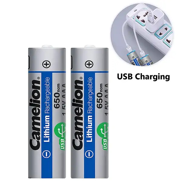 باتری لیتیوم قابل شارژ کملیون مدل USB-C سایز AAA، ظرفیت 650 میلیواتساعت