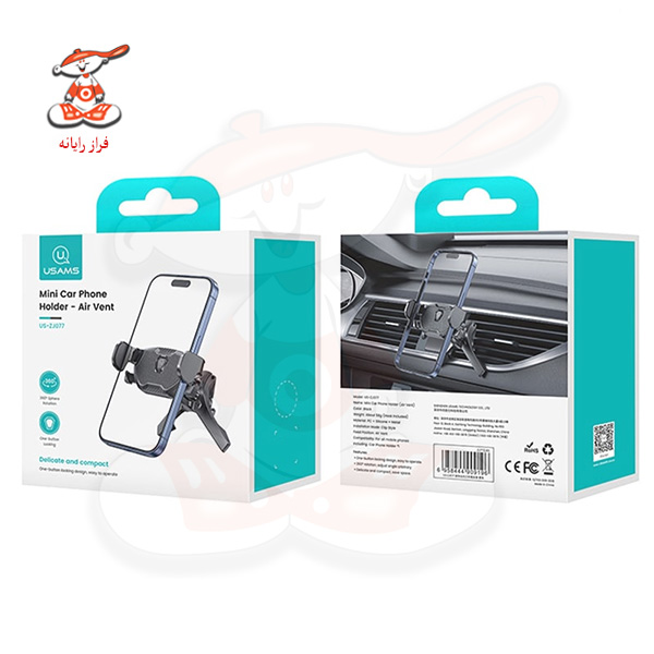 پایه نگهدارنده موبایل یوسمز مدل Zj077 برای انواع گوشی موبایل است .این پایه قابلیت نصب بر دریچه تهویه هوا را دارد که شما به راحتی می توانید مسیر را از روی نقشه مشاهده و ایمن رانندگی کنید.