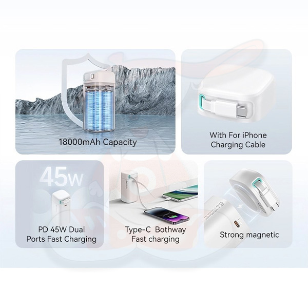 - امکانات و قابلیتها : دارای یک کابل Type-C متصل به پاوربانک