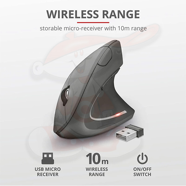ماوس بی سیم TRUST مدل Verto به لطف طراحی ارگونومیک و استراحت انگشت شست راحت، میتوانید ساعتها در دفتر یا خانه بدون زحمت کار یا مطالعه کنید. و طرح عمودی ساعد و مچ شما را به حالت طبیعی می رساند و به عضلات دست، مچ و بازو استراحت می دهد. روکش لاستیکی این ماوس تضمین می کند که هنگام کار برای مدت طولانی تری در دست نگه دارید. به کمک TRUST راحتی یک ماوس بی سیم را تجربه کنید و میز خود را مرتب نگه دارید. گیرنده این ماوس تضمین می کند که ماوس به صورت بی سیم در محدوده 10 متری کار می کند. همچنین، این ماوس دارای کلید روشن و خاموش است، بنابراین می توانید با خاموش کردن ماوس در زمان عدم استفاده، در مصرف انرژی صرفه جویی کنید. و همچنین به سادگی گیرنده micro USB را به یک پورت USB وصل کنید و می توانید از یک سنسور نوری 800/1200/1600 dpi استفاده کنید که عملکرد دقیق را تضمین می کند. با دکمه ویژه به dpi دیگری بروید یا با دو دکمه انگشت شست به سرعت صفحات وب دیگر را مرور کنید.